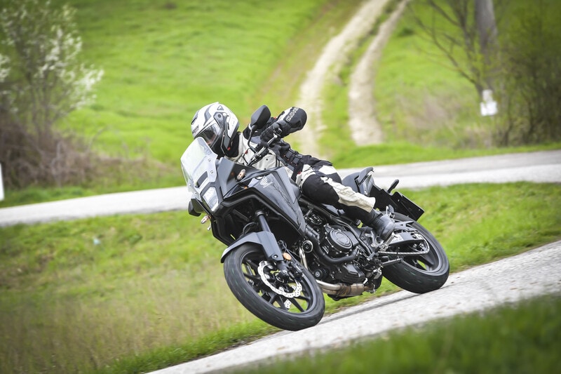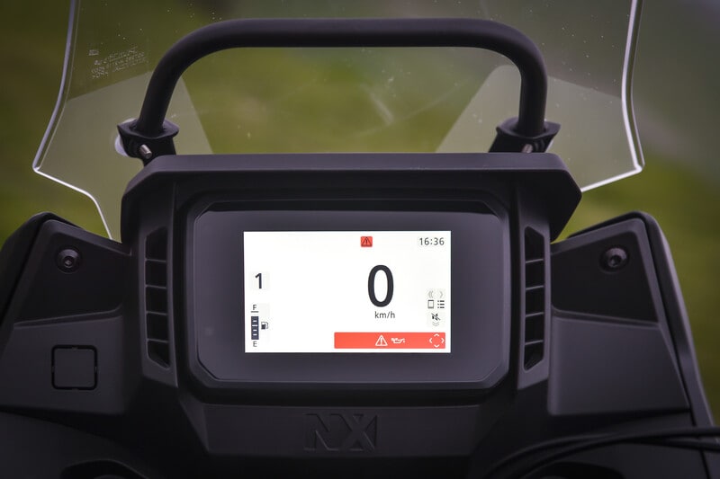 Molto diversa dalla TRK 502. In Giappone per esempio ci tengono al peso, e infatti sulla nostra bilancia la NX ha fatto segnare 196,2 kg col pieno (196 è il dato dichiarato). Praticamente un’altra categoria. Sfrutta un bicilindrico parallelo, 471 cc da 39,1 CV