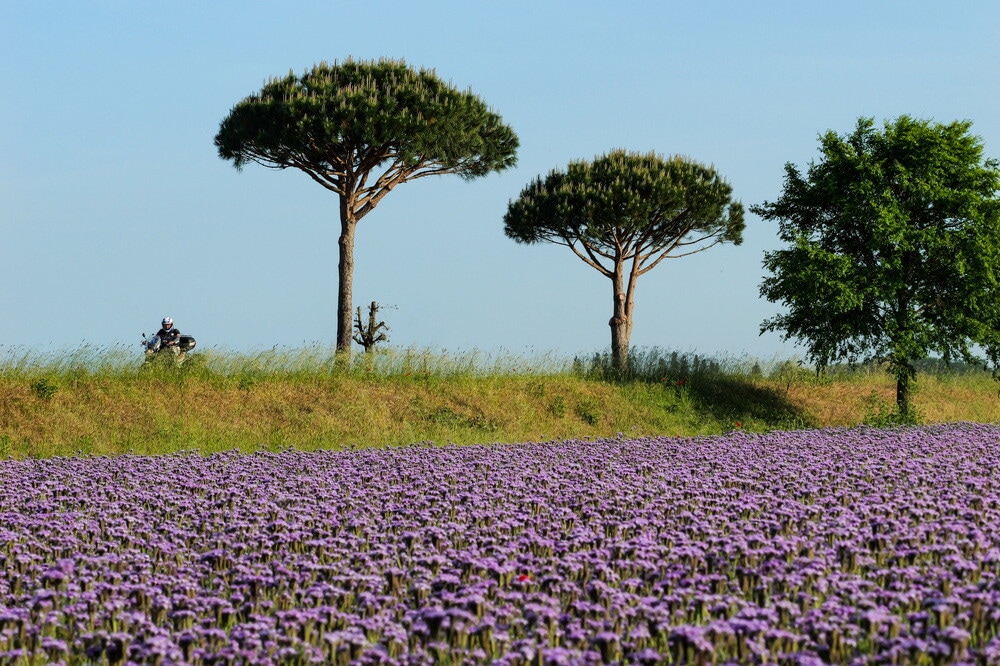 Dai campi di facelia con i loro fiori azzurro-violetto al Castello Estense, simbolo iconico della città e sede museale di Ferrara