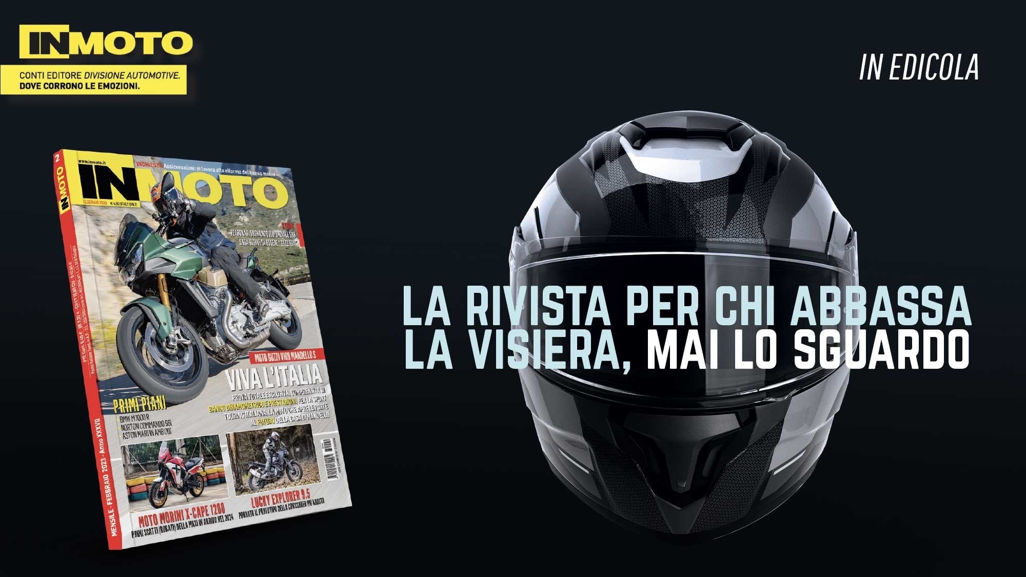 Il numero di febbraio di InMoto, in edicola in questi giorni, è un inno al nostro Paese. Soggetto di copertina, la nuovissima Moto Guzzi V100 Mandello, la prima moto con aerodinamica “attiva”, che abbiamo analizzato sotto ogni punto di vista e di cui pubblichiamo tutti i dati rilevati dal nostro banco prova e durante le sessioni in pista. Ma non solo questo se consideriamo gli approfondimenti tecnici sul motore, raffreddato a liquido, e sulla ciclistica.