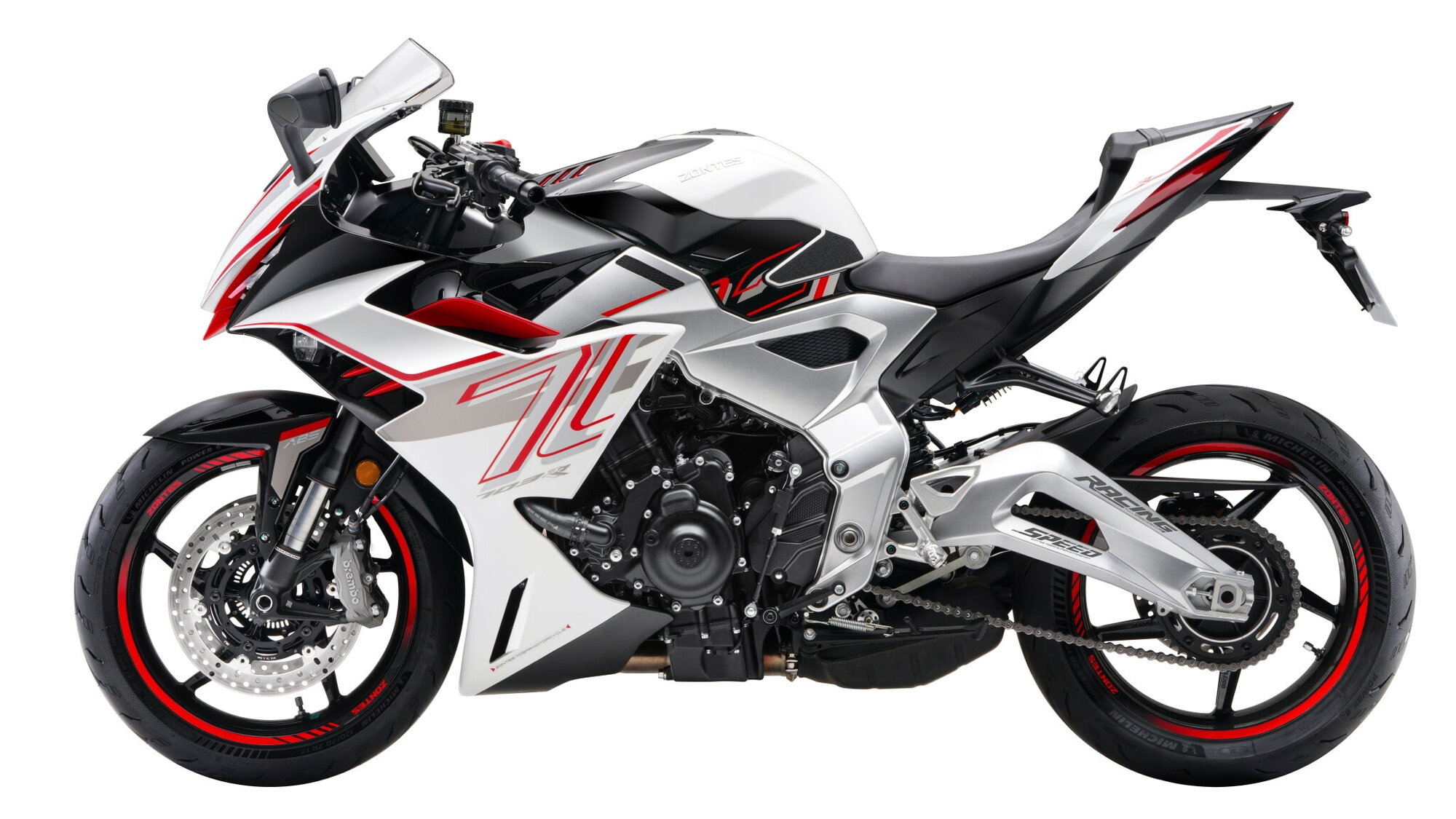Con un peso dichiarato, in ordine di marcia, di 196 kg, una sella posta a 820 mm da terra, e una veste grafica grintosa nella colorazione White Red, la ZT703-RR si presenta come una vera alternativa alle sportive europee e giapponesi di media cilindrata. Disponibile anche in versione A2 da 35 kW, sarà proposta al pubblico con un prezzo di listino di 7.990 euro.
