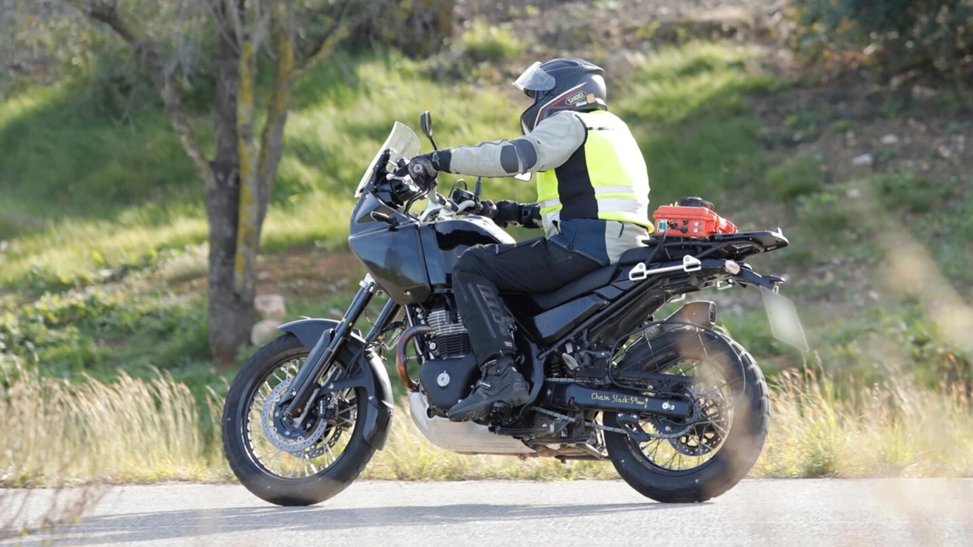 Royal Enfield è pronta a fare sul serio e porta avanti lo sviluppo di una versione a due cilindri della sua Himalayan: come possiamo vedere dalle foto spia (pubblicate da MCN), il progetto è ormai in una fase avanzata e si sta progressivamente avvicinando alla produzione. Il cuore della nuova moto dovrebbe derivare dal bicilindrico parallelo raffreddato aria/olio che già equipaggia modelli come l’Interceptor e la Super Meteor, ma rivisto con una cubatura aumentata. Si parla di un motore da circa 750 cc e di una potenza superiore rispetto agli attuali 47 cavalli della piattaforma 650.