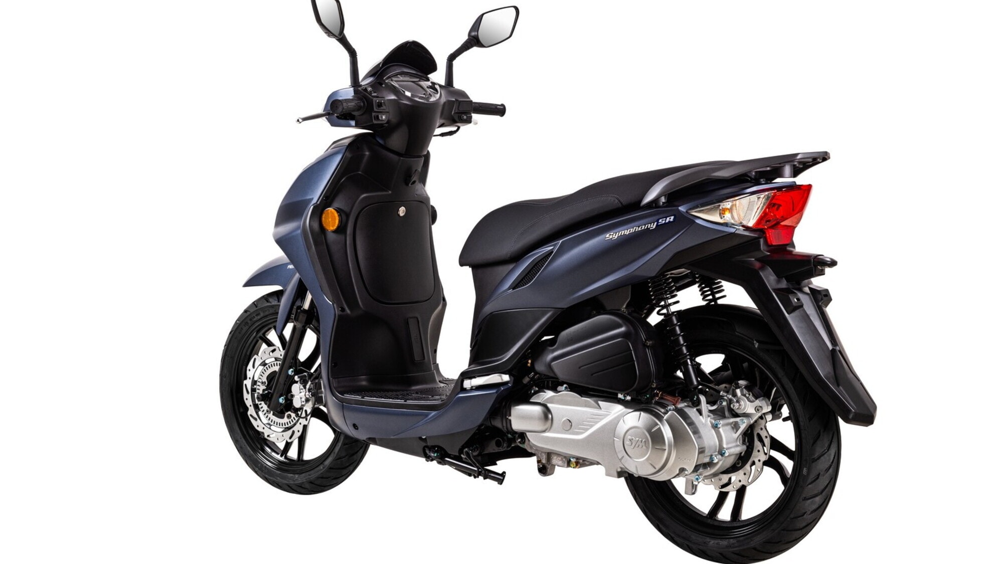 Il restyling del SYM Symphony SR, invece, porta con sé un nuovo linguaggio di design dal carattere deciso e conferma le ruote alte con il doppio cerchio da 16 pollici. Le sospensioni in questo caso prevedono la forcella telescopica all'anteriore e il doppio ammortizzatore al posteriore, mentre il sistema frenante è composto da un disco a margherita sia all'avantreno che al retrotreno, con il sistema CBS. La potenza del motore 125 cc cresce a 11,3 CV e la sella si trova a 790 mm da terra.