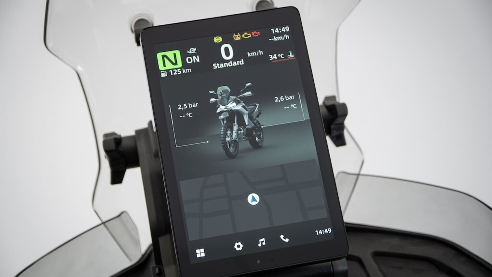 Il display TFT touch a colori, per essere facilmente leggibile anche nella guida in piedi, ha l’orientamento verticale: adotta la connettività con Apple CarPlay wireless.