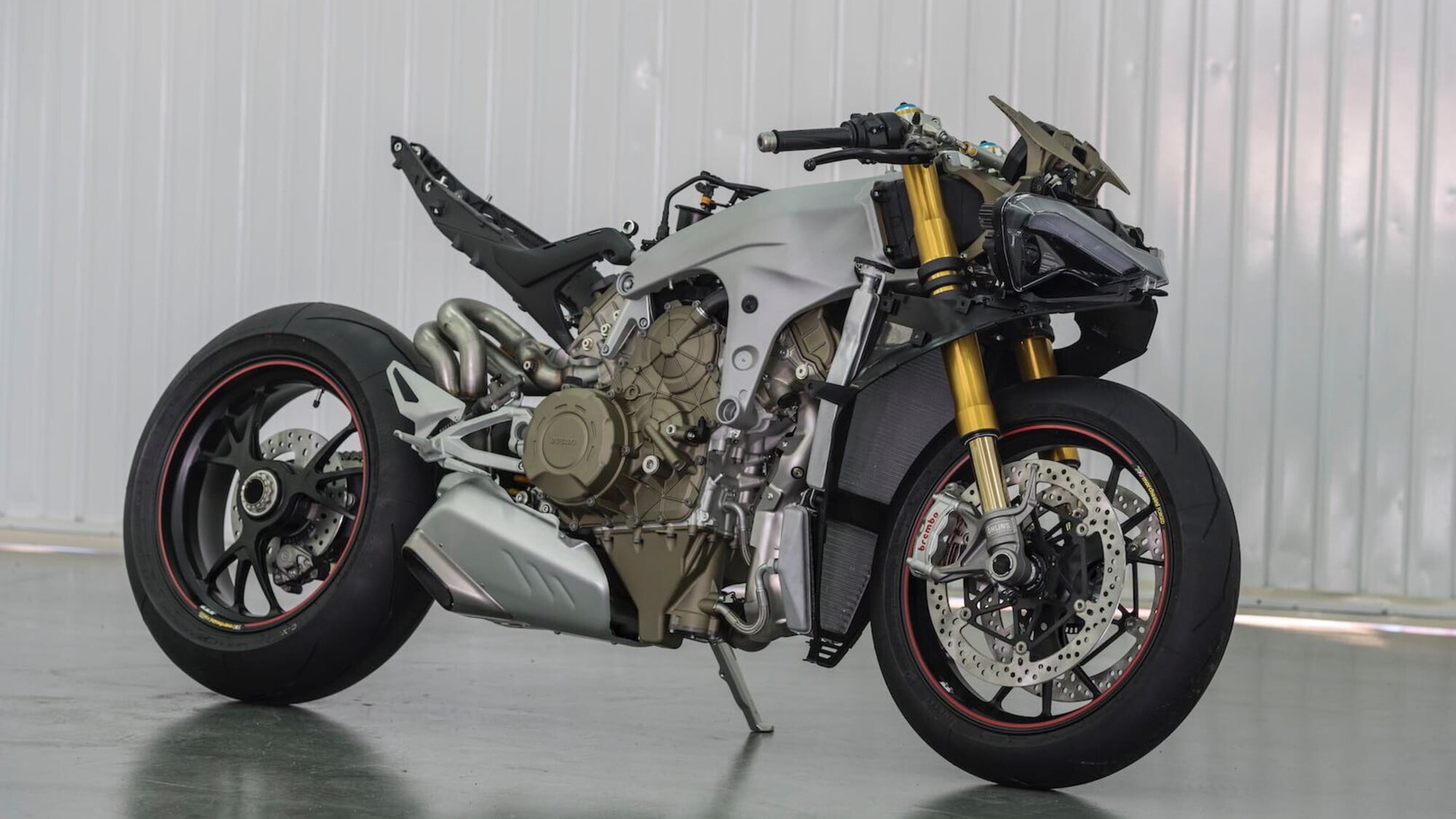 Più recentemente, Ducati ha introdotto un ulteriore cambiamento epocale con il telaio monoscocca in alluminio, noto anche come “front frame”, che ha debuttato prima sulle MotoGP e poi sulla Panigale V4 e sui modelli derivati. In questo caso, il telaio è ridotto a una struttura compatta che collega la zona del cannotto di sterzo al motore, il quale assume una funzione portante. Si tratta di una soluzione ispirata alle vittore nella massima serie, pensata per ridurre peso e ingombri e migliorare la distribuzione delle masse.