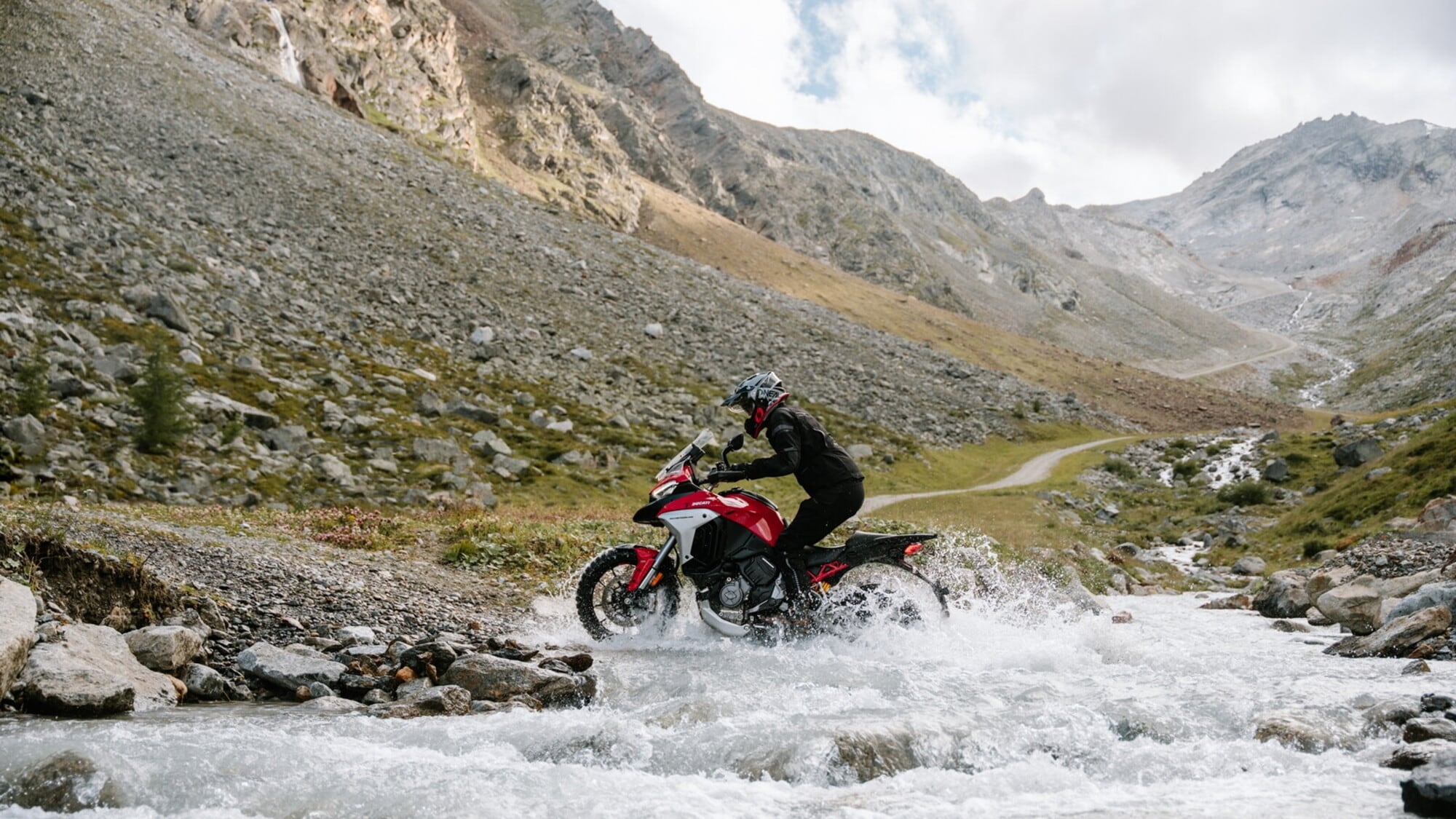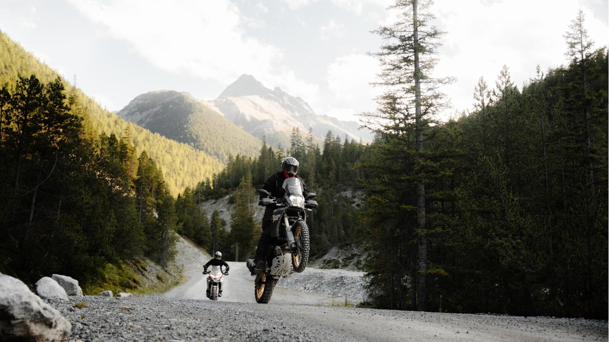 Entrando nel dettaglio, i tasselli dello pneumatico anteriore, inclinati in avanti in direzione di marcia, migliorano la frenata in off-road, mentre quelli del posteriore, orientati in direzione opposta, assicurano massima trazione in accelerazione. Una delle principali novità è la costruzione della carcassa, progettata specificamente per un utilizzo 50% su strada e 50% off-road. Garantisce stabilità anche a pieno carico, alle alte velocità e nei percorsi più impegnativi, mentre l’assorbimento migliorato delle asperità aumenta il comfort di guida in ogni condizione.