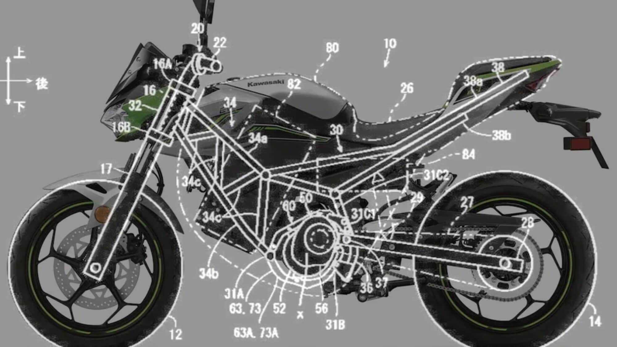 Kawasaki brevetta il telaio modulare per moto elettriche: più libertà progettuale, meno costi