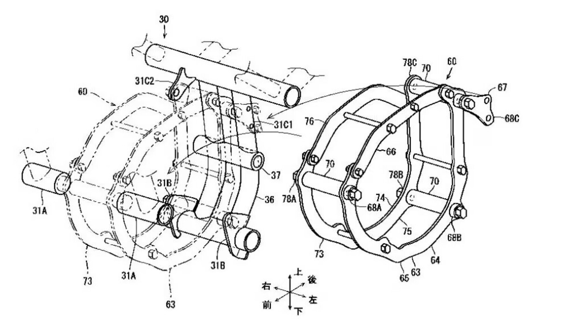 Un nuovo brevetto depositato dalla Casa di Akashi mostra una moto simile alle attuali Kawasaki Z e-1, con telaio a traliccio in acciaio e un vano centrale per batterie removibili. La novità interessante è l’introduzione di un telaietto intermedio tra telaio principale e gruppo motore-trasmissione: composto da sezioni superiori e inferiori sostituibili, questo nuovo elemento permette di adattare i punti di fissaggio a motori differenti senza riprogettare l’intera ciclistica. In pratica, si potrebbe cambiare l'unità motrice mantenendo la piattaforma ciclistica.