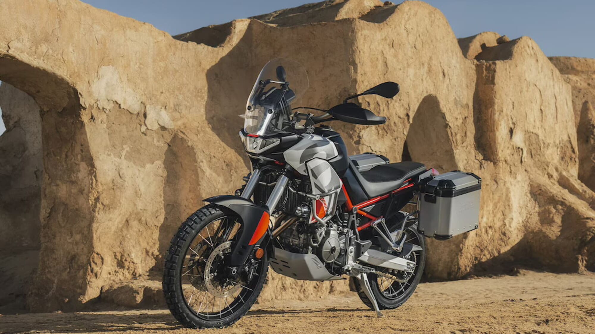 Il punto di forza è la ciclistica: le sospensioni a lunga escursione completamente regolabili, 240 mm è la corsa per entrambe, il peso è contenuto a 204 kg in ordine di marcia. Ha un’elettronica avanzata, con riding mode dedicati all’off-road. Forte del pacchetto elettronico APRC, integra mappe motore che ne esaltano la versatilità. Il display TFT da 5” è connettibile allo smartphone.