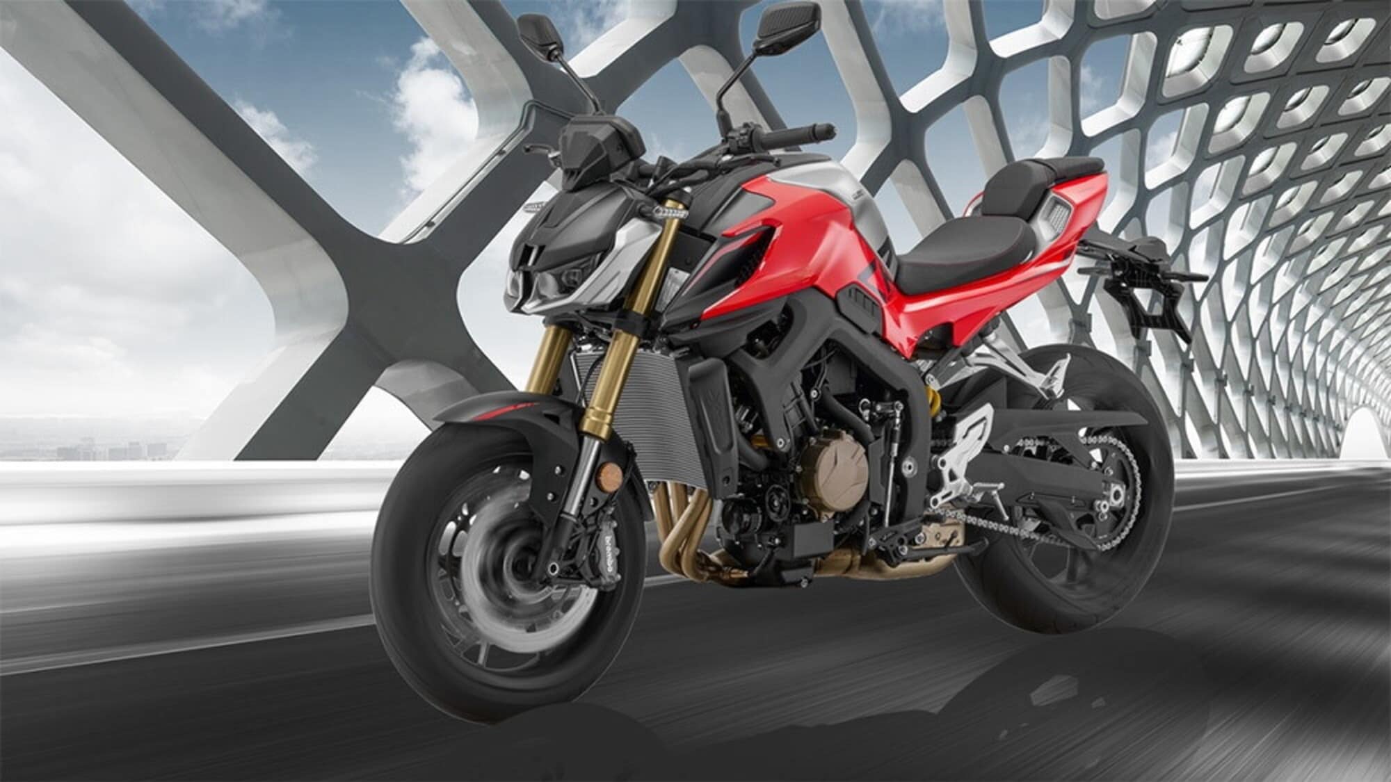 La dotazione include sospensioni regolabili, la forcella ha gli steli rovesciati, ci sono i freni Brembo e una componentistica superiore alla media del segmento.