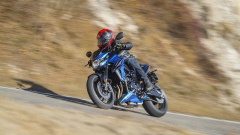 SOUNDS GOOD - Giro di chiave, pulsante di avviamento e il 4 cilindri si risveglia. Ed è piuttosto aggressivo: il nuovo terminale suona le note giuste, un’indovinata dose di rabbia. Con la GSX-S s’innesta la prima e si parte, senza troppe difficoltà. Il peso è ben distribuito, le pedane centrate e non alte da terra, i comandi sono morbidi e il motore è dolce (ma per la verità soffre un po’ di effetto on-off): tutte caratteristiche che mettono a proprio agio anche il pilota meno esperto.